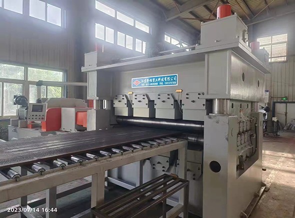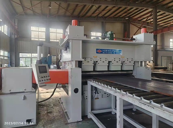 The main body of the machine adopts a four-column frame structure, the lower row work roller is fixed on the lower base, the upper row work roller is fixed on the movable beam, through the drive of the motor, reducer and worm gear, the upper row work roller is lifted and lifted. In order to ensure the leveling accuracy, the upper and lower row work rollers are equipped with supporting rollers. All work rolls are active rolls. The main motor enters the distribution box through the reducer and drives the work roll through the universal coupling shaft. All operations of the machine are centrally controlled at the operating table. The friction pairs of the main machine are lubricated by electric dry oil lubrication pump. All the actions of the machine are operated on the panel of the operating table, which has the advantages of simple, convenient, safe and reliable operation.
